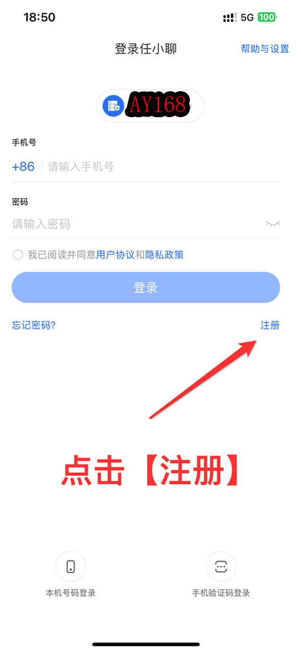 点击注册 → 填验证码 → 设置密码 → 注册登录